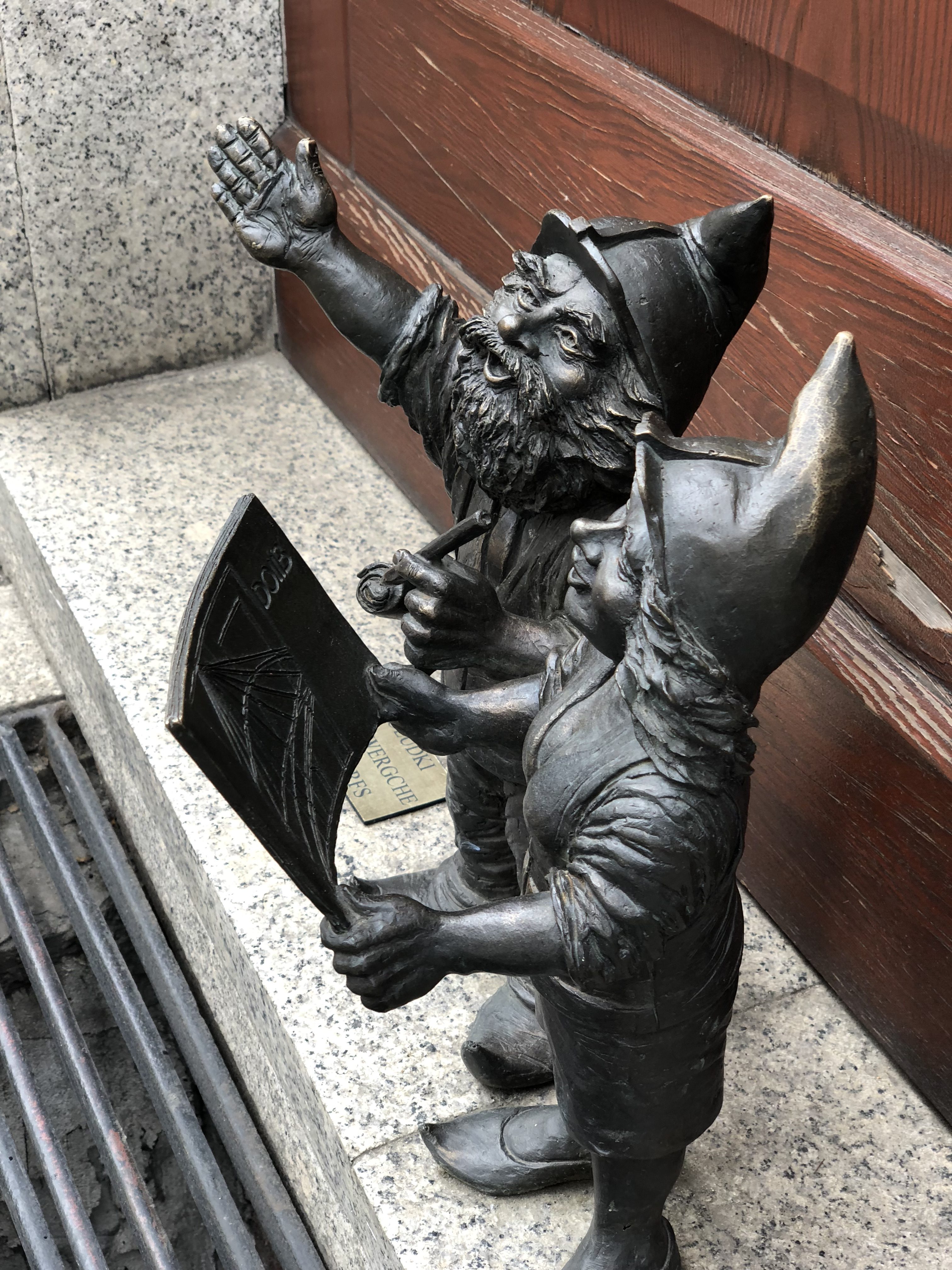 2. A caça aos duendes… é muito legal sair a procura deles, são mais de 300 espalhados pela cidade. Mas, se você não tiver paciência, baixe o app Wroclawskie Krasnale!