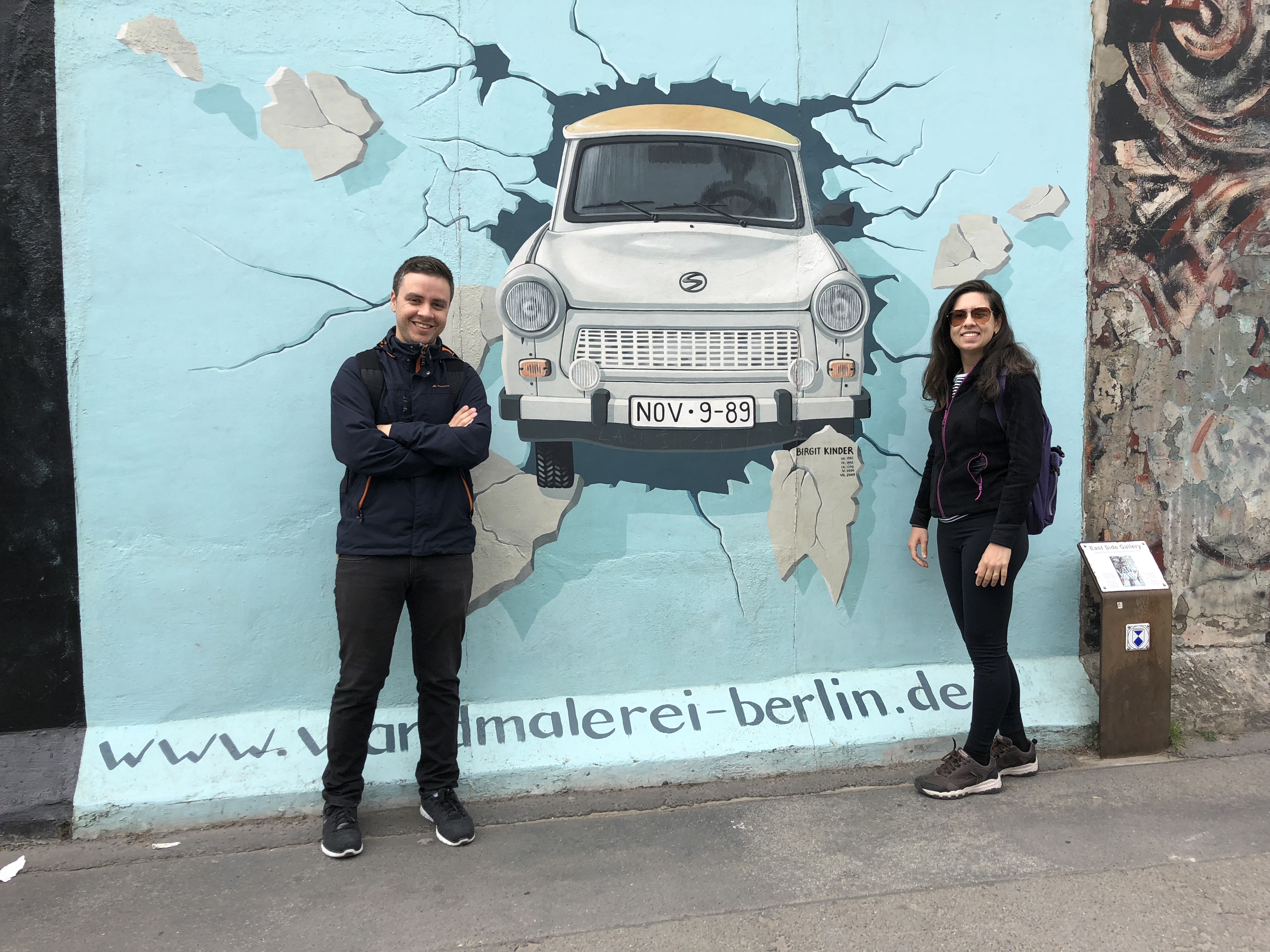 Dia 02 – Fomos ao East Side Gallery – uma galeria de arte a céu aberto, que consiste em 1,6km do Muro de Berlin preservado e grafitado. Tem uns grafites famosos que são lá (o Beijo, por exemplo), é legal de passear por todo o muro.