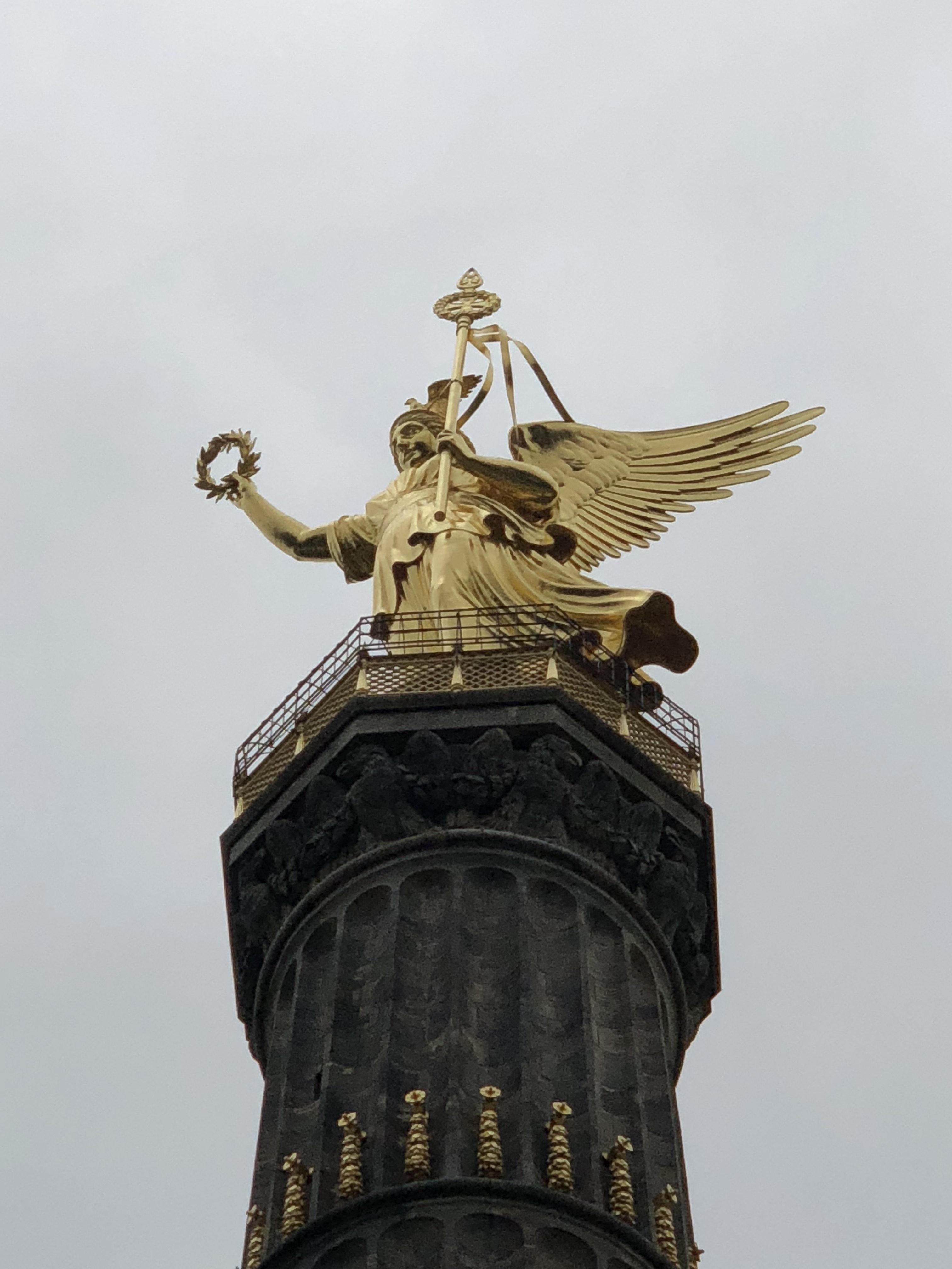 Depois pegamos metro e fomos até Victory Column – um monumento construído em comemoração a vitoria em batalhas comemorar as vitórias militares do Reino da Prússia sobre o Império Austríaco, Reino da Dinamarca e França entre 1864 e 1871. No caminho tem um parque grandão, que é cortado no meio por uma avenida gigante, chamada “Unter den Linden”, e no meio de tudo tem essa Victory Column,