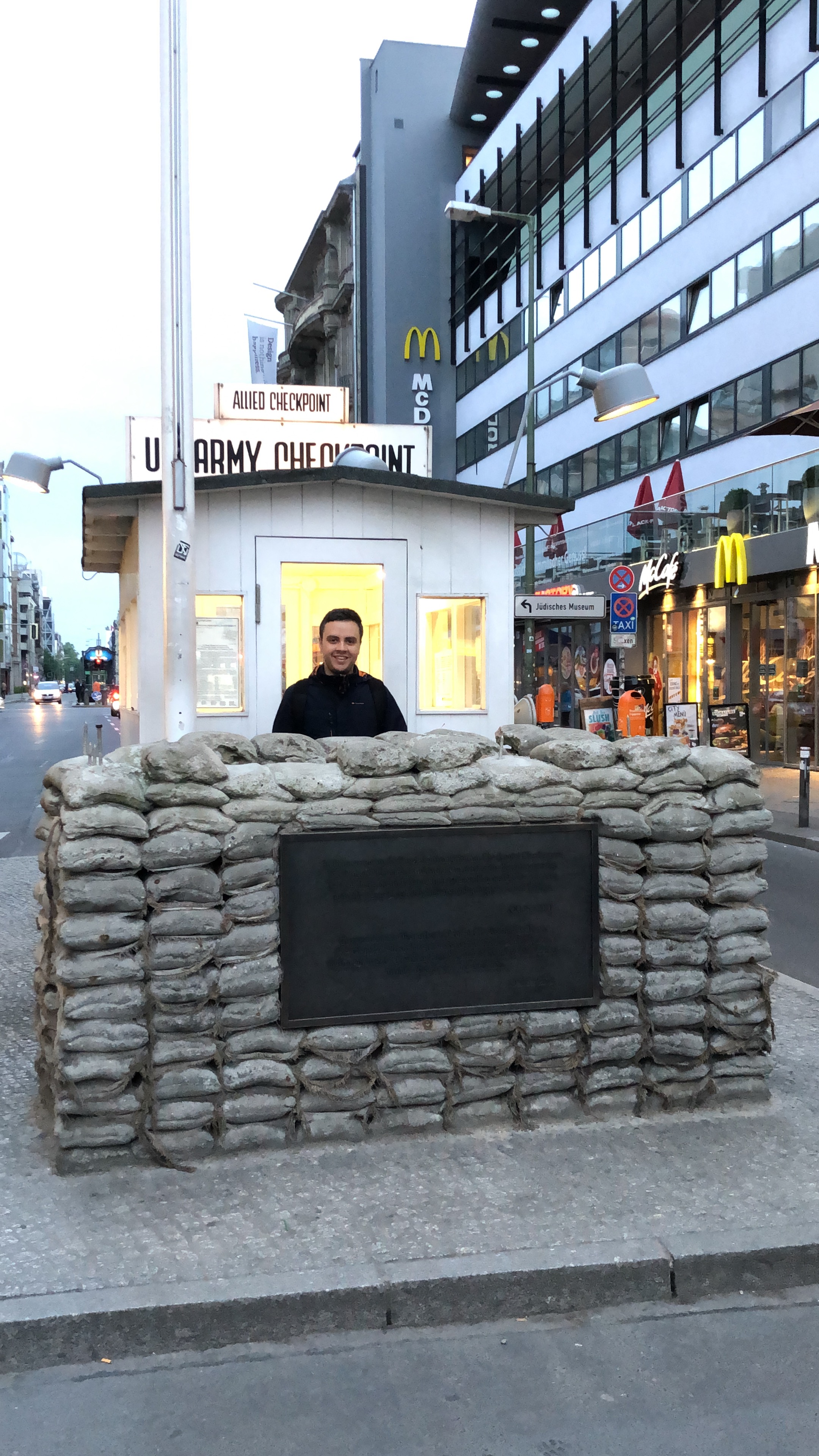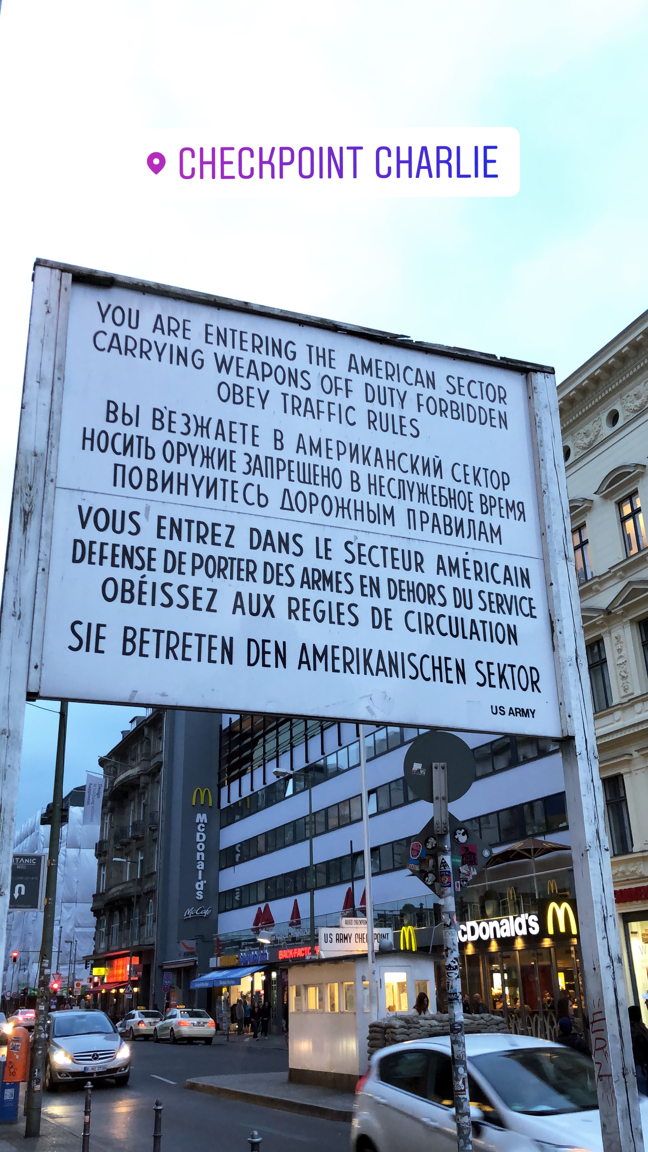 Pausa para trabalhar e seguimos conhecendo o Check Point Charlie – É um ponto histórico na divisa do lado capitalista/soviético, onde os alemães iam pra mostrar documentos passar pro outro lado. Tem uma barraca e a placa com os dizeres históricos: YOU ARE LEAVING THE AMERICAN SECTOR. Ao lado tem um museu gratuito do lado sobre a guerra.