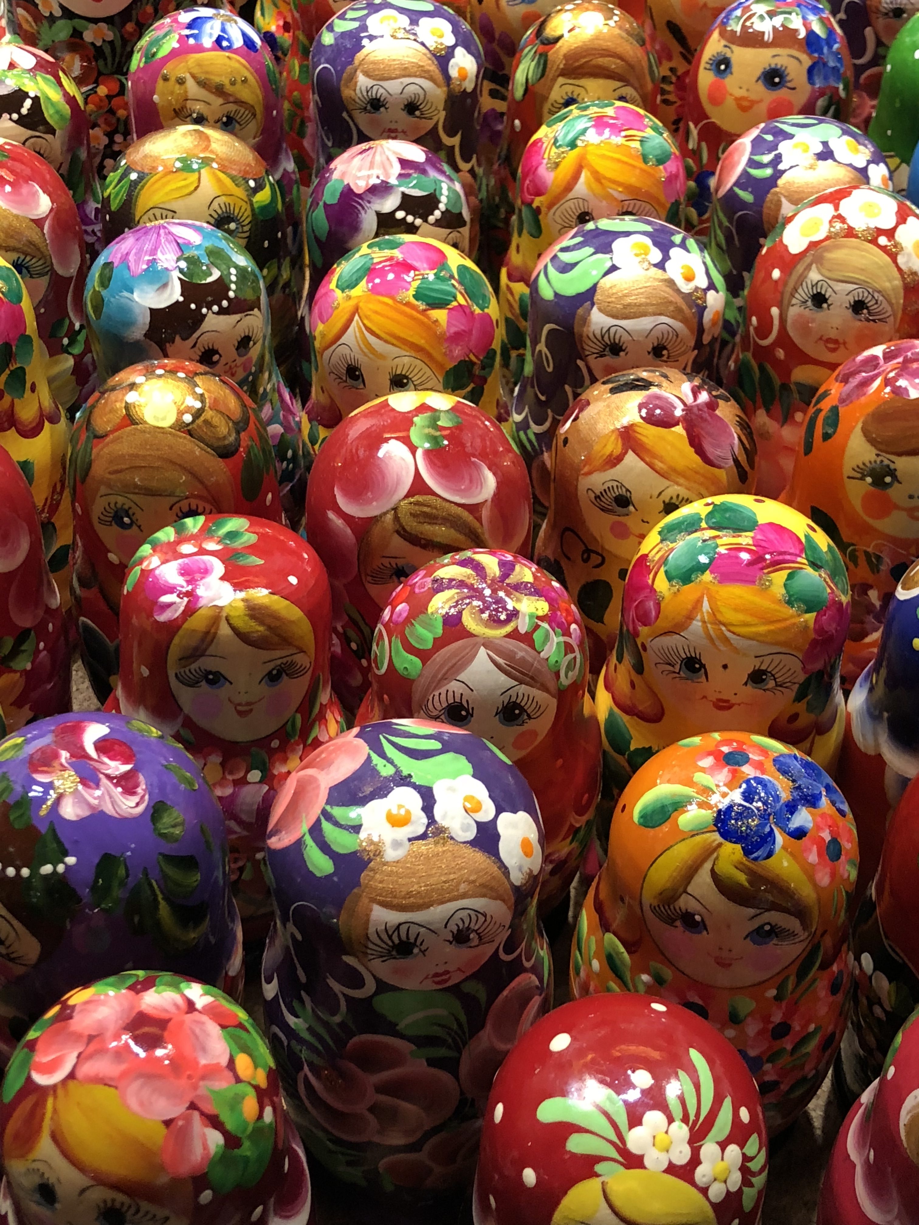 Encontramos muitas matrioscas, que pensávamos ser exclusividade da cultura russa. Acho que a influência da URSS foi muito forte em toda a Polônia, por isso a culinária e as artes se misturam tanto.