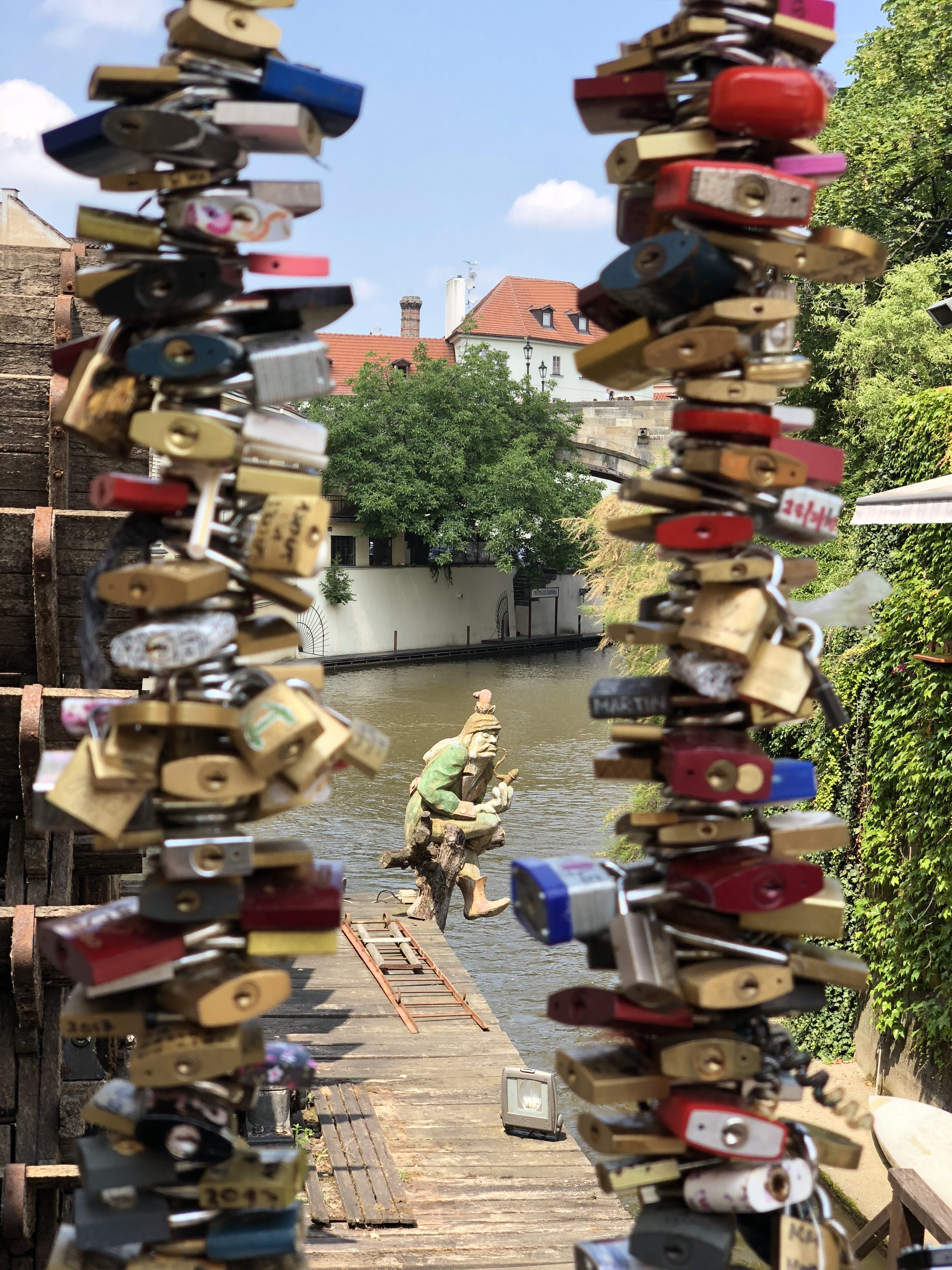 Por isso seguimos em direção à Ponte Carlos, a área é linda e a ponte é digna de várias fotos, como essa aí em cima. Chegando do outro lado, almoçamos e seguimos para conhecer o famoso Muro de Lennon, esse muro é famoso, pois marca uma era onde a liberdade de expressão não existia. Mensagens de paz e liberdade são grafitadas em toda a área do muro, depois passamos pela ponte do Amor, cheia de cadeados e fomos até Malá Strana, uma área da cidade velha.